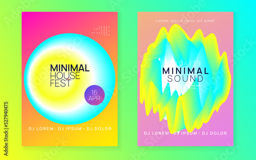 © Holo Art, Fototapeta premium Sound Flyer. Cool Dance Poster. Memphis Pattern For Set Layout. Music And Concert Design. Jazz Effect For Cover. Yellow And Turquoise Sound Flyer