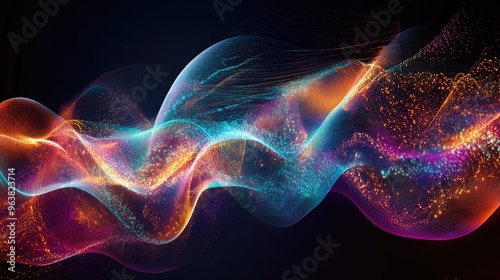 Obraz premium Sound waves merging with light waves in an abstract design, highlighting the...