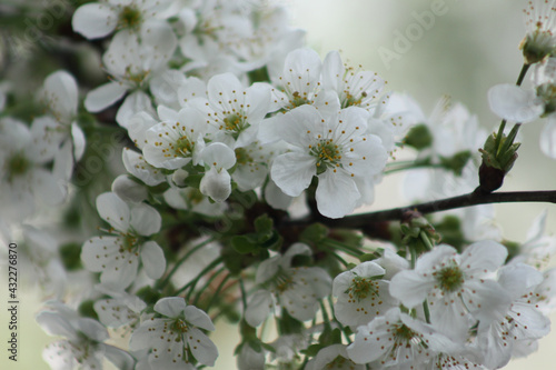 © Cenusa Silviu Carol, Fototapeta premium Sour cherry blossom closeup with leaf