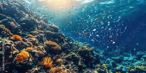 Fototapeta premium Sources of microplastics and their effects on marine ecosystems a study of pollution dynamics