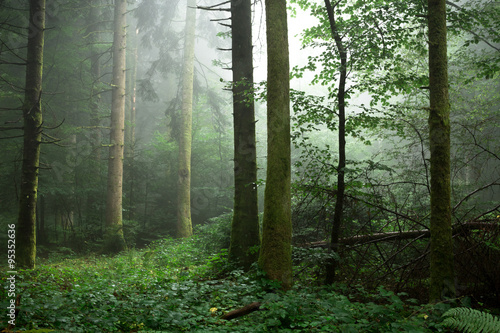 © Olivier Tabary, Fototapeta premium sous bois troncs et parterre de feuillage