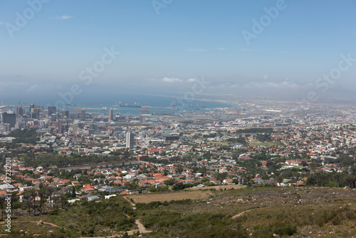 Obraz premium South Africa Cape Town view from Table Mountain on a cloudy winter day.