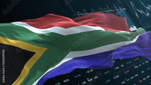 © Myvector, Naklejka premium South Africa flag - Waving flag on report analytics data statement
