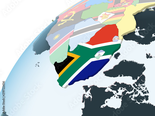 Obraz premium South Africa with flag on globe