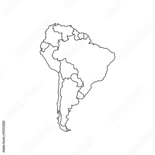 Fototapeta premium South America isolated map on white background. High detailed, with board....
