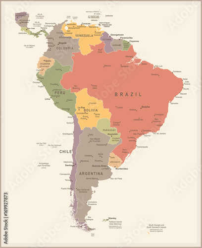 © Porcupen, Fototapeta premium South America Map - Vintage Vector Illustration