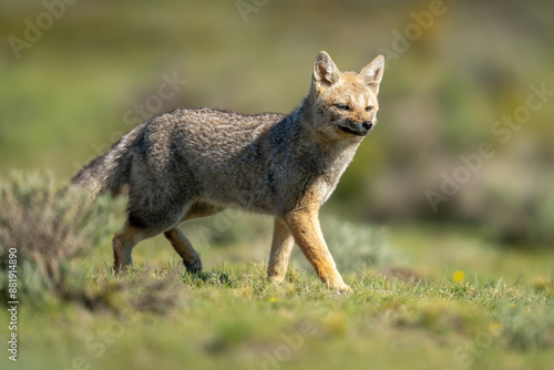 © Nick Dale, Obraz premium South American gray fox walks past bush