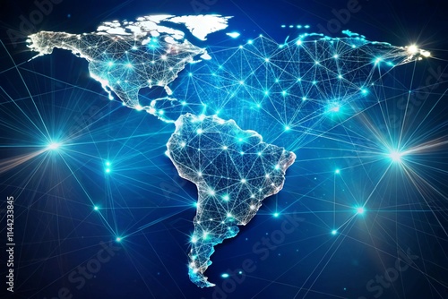 Fototapeta premium South Americas Technological Map Depicting Global Communication and Data...