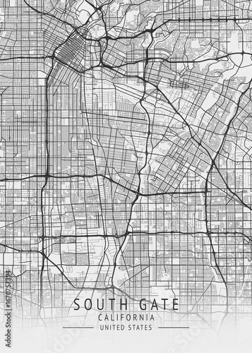 © Tien Stencil, Fototapeta premium South Gate - California - US Gray Map Art