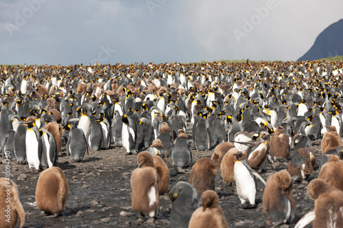 © Iurii, Obraz premium South Georgia colony of king penguins on a sunny winter day