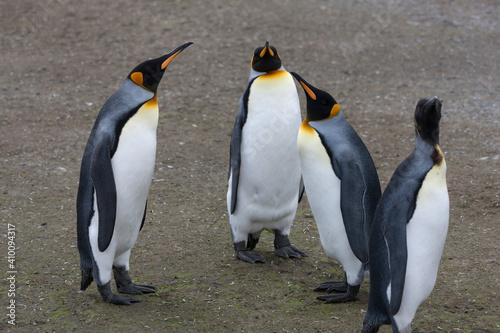 Fototapeta premium South Georgia group of king penguins on a sunny winter day