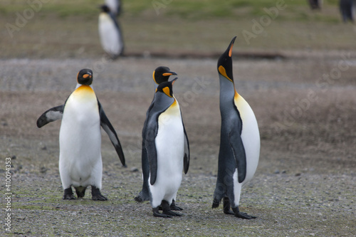 Fototapeta premium South Georgia group of king penguins on a sunny winter day