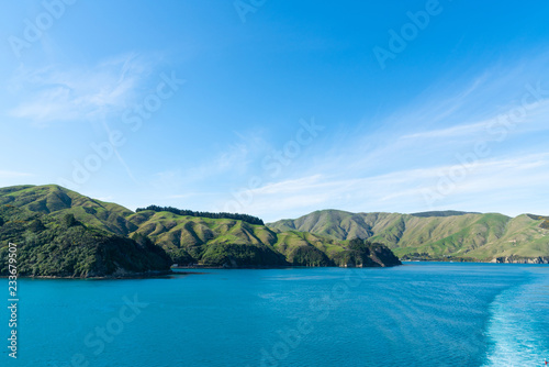 Fototapeta premium South Island coastline from ferry crossing