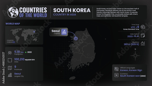 Naklejka premium South Korea Map Detailed Insights on Geography, Population and Key...