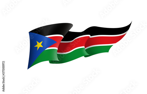 © ASEF, Naklejka premium South Sudan flag state symbol isolated on background national banner. Greeting card National Independence Day of the Republic of South Sudan. Illustration banner with realistic state flag.