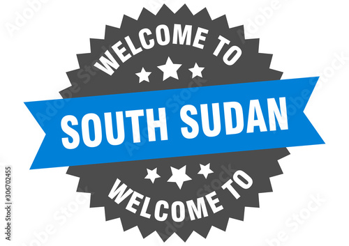 Fototapeta premium South Sudan sign. welcome to South Sudan blue sticker