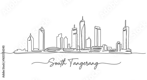 Obraz premium South Tangerang Line Art with Skyline, and Indonesia.