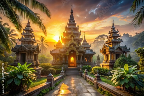 © Man888, Fototapeta premium Southeast Asia Architectural Wonders: Stunning Sunrise Over Ancient Temples