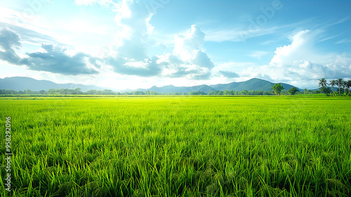 Fototapeta premium Southeast Asian Rice Cultivation, Traditional Agriculture, Text Placeholder