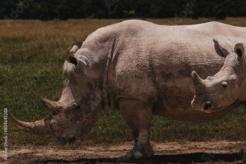 © _mishamartin, Fototapeta premium Southern white rhino in natural habitat, Ol Pejeta Conservancy
