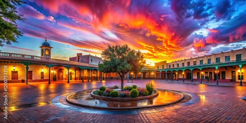 Fototapeta premium Southwestern architecture meets historic photography at Santa Fe's Palace of...