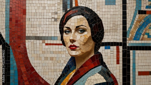 © Volgastudio, Fototapeta premium Soviet-era Mosaic Artistic Portrait in Tiles