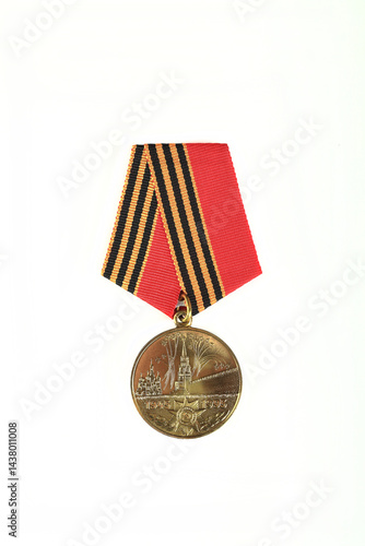 © jahet7, Naklejka premium Soviet medal of the participant of the Second World War on a white background. 50 years of Victory.