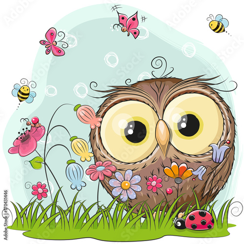 © reginast777, Obraz premium Sowa kreskówka na łące