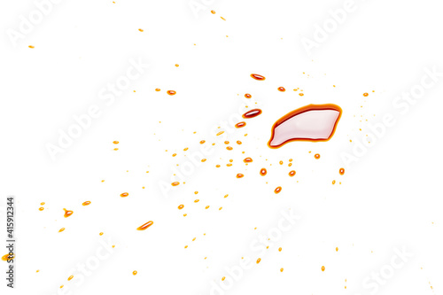 © Andrii, Fototapeta premium soy sauce drip isolated on a white background. soya sauce swirl cut out. above view. studio shot