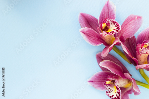© 976photo, Naklejka premium Spa and wellness setting with orchid on blue background copyspace