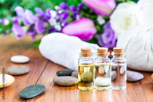 © Singha songsak, Fototapeta premium Spa concept Essential oil in bottle