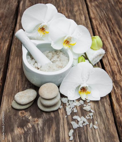 © Olena Rudo, Naklejka premium Spa products with orchids