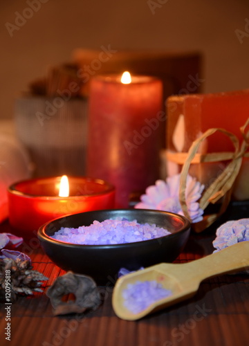 Obraz premium Spa still life with soap, bath salt, cream,towel,candles
