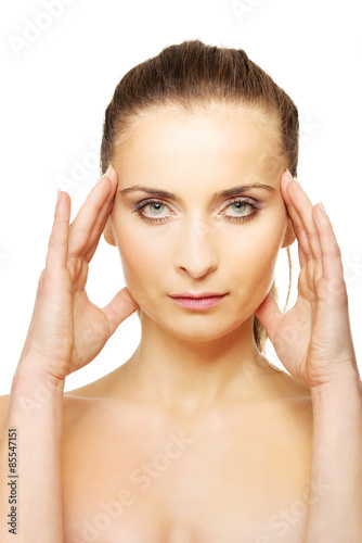 Fototapeta premium Spa woman with make up touching her face.