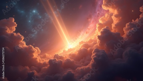 © thiago, Fototapeta premium SPACE ABOVE THE CLOUDS, SUNRISE LIGHTING UP THE STARS
