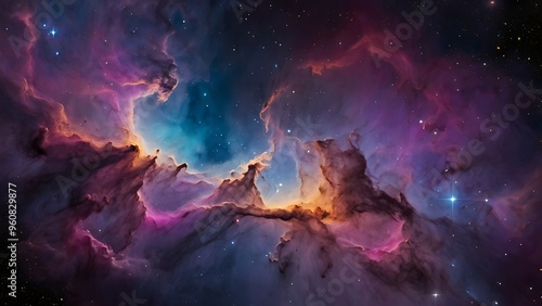 © Rebound Gallery, Fototapeta premium Space background wallpaper, endless galaxies and space clouds blue and purple themed