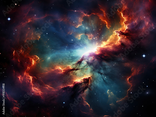 © MdSaiful, Fototapeta premium Space background with stardust and shining stars realistic colorful cosmos