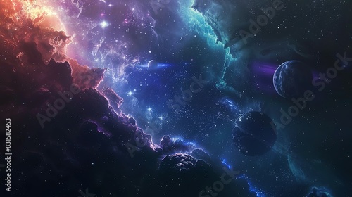 Fototapeta premium Space Banner Background: Stunning Galaxy with Planets