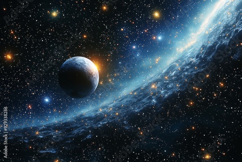 © dendyh7, Obraz premium Space cosmic illustration with planets scene created with Generative AI