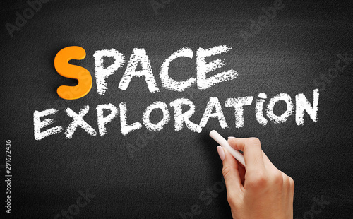 Fototapeta premium Space exploration text on blackboard, concept background