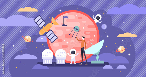 © VectorMine, Fototapeta premium Space exploration vector illustration. Flat tiny astronaut person concept.