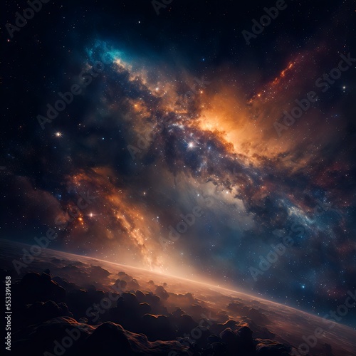 Fototapeta premium Space galaxy background with planets and stars
