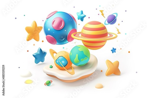 © Rahnumas, Fototapeta premium Space hand drawn color illustrations set. Doodle astronomical phenomena. Cartoon moon, comet, asteroid, lightning, explosion, planets. Cosmic collection. Astronomy for kid isolated vector