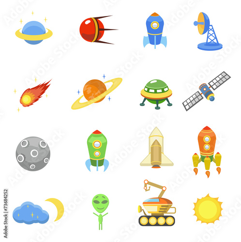 © lightgirl, Naklejka premium Space icons set of rocket galaxy planet ufo vector