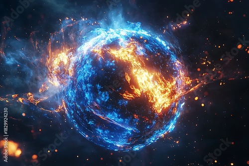 © Tuly, Obraz premium Space ignited planet radiating fierce heat high resolution picture