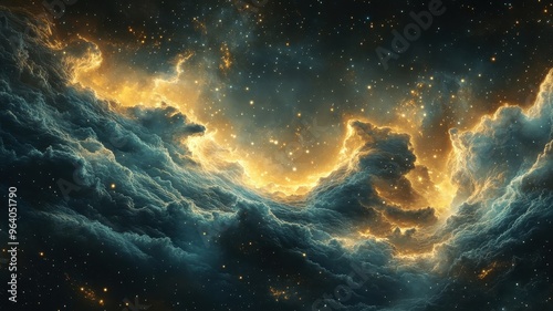 Fototapeta premium Space in Art Nouveau style with elegant curves, ornate details, celestial patterns, and sophisticated design elements.