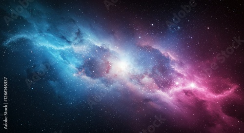 Obraz premium Space nebula, cosmic clouds, vibrant colors, pink and blue hues, starry...