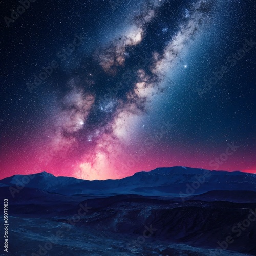© hakunamatata, Naklejka premium space on the mar see milky way neon color
