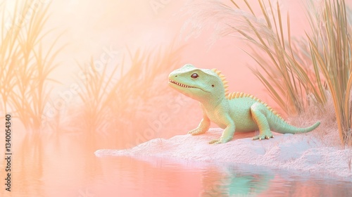 © earnjubu, Naklejka premium Space Pastel Green Overview Vibe Empty Prehistoric
