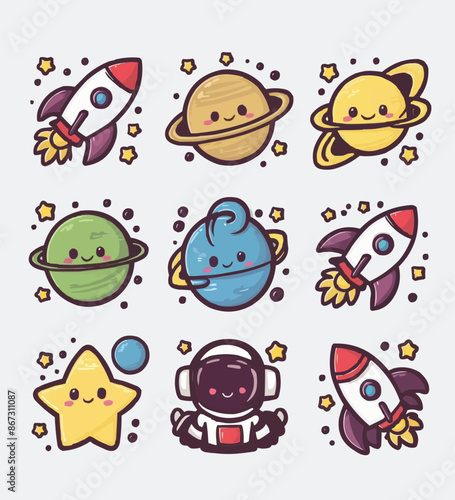 © jrgraphics, Fototapeta premium Space printable stickers clipart vector illustration set